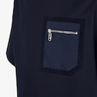 تي شيرت بتصميم المتزلجين مع جيب خارجي بسحّاب على الجهة الأمامية. رقبة مدورة وأكمام قصيرة. مصنوع من القطن %100 باللون الأزرق الداكن. الجيب الأمامي من الجاكار مع طباعة FF باللون الأزرق، مع إغلاق سحاب Fendi O'Lock.