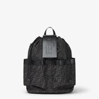 حقيبة ظهر متوسطة الحجم من قماش جاكارد مزينة بشكل FF بلون أسود ورمادي. تفاصيل من جلد أسود ولسان عليه شعار Fendi Roma منقوش.