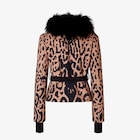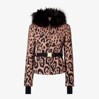 Short, padded ski jacket with fur-trimmed hood. Jersey cuffs and matching belt at the waist. Made of technical fabric with exclusive, all-over Fendi Leo motif print. Side zip pockets and front zip fastening. Technical fabric construction.