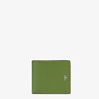 Bi-fold wallet, organised inside with eight card slots and two banknote compartments. Made of dark green Cuoio Romano leather, finished with 134 hand-sewn, matching macro topstitches, an emblem of the iconic Selleria workmanship handed down through generations of Fendi artisans since 1925. Grey Cuoio Romano leather lining. Palladium-finish metalware.