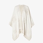 Lightweight poncho made of ivory pure wool yarn with dove grey details. The Selleria macro check motif creates a refined, three-dimensional effect with an interplay of textures. Jacquard FF details and contrasting interior in pale dove grey.