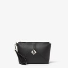 Fendi Lui clutch bag with a soft design, made of black full-grain calf leather. Detachable bracelet handle and metal FF appliqué on both sides.