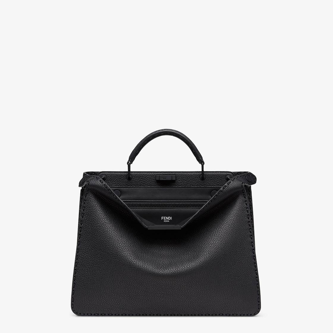 Medium Peekaboo ISeeU bag, made of black Cuoio Romano leather topstitched by hand.
