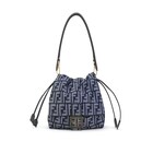 Made of dark blue denim-effect FF jacquard, embellished with an FF clasp with dark blue leather insert.