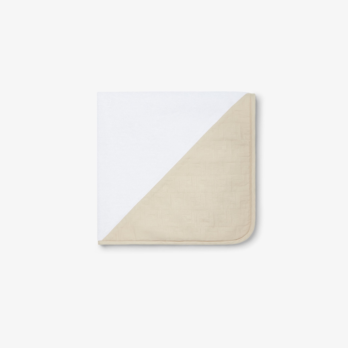 White cotton terry baby towel with beige cotton hood and tone-on-tone FF logo.