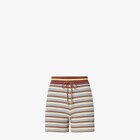 Fitted shorts with high drawstring waist. Made of a ribbed cotton knit with striped motif in brown, yellow and blue.