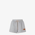 Shorts with elasticated drawstring waist. Side pockets and rounded side slits. Made of grey mélange cotton jersey. Embellished with a tan leather Fendi patch applied on the left-hand hem.