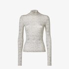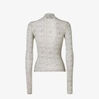 Long-sleeved streamlined high-neck jumper. Made of white stretch viscose jersey printed with the Peppered Falena motif in black. Embellished with a metal FF detail on the front left-side of the hem.