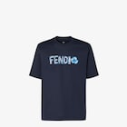 Regular-fit, short-sleeved crew-neck T-shirt. Made of navy blue pure cotton. Customised with the Fendi Flowers logo embroidered on the front in a light blue and white painted effect.