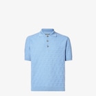 Short-sleeved polo shirt. This style has a classic collar with button fastening. Made of light blue cotton yarn with FF logo embroidered all-over in the same colours. Finished with ribbed edges.