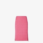 Straight-cut midi skirt featuring long, contrasting zips on both sides. Made of shiny pink viscose yarn, crafted with an all-over cable-knit motif. Finished with ribbed edges.
