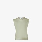 Sleeveless crew-neck jumper. Made of shiny, light green ultra-fine viscose yarn. Fendi logo embroidered on the side hem in contrasting colours. Borders embellished with ribbing.