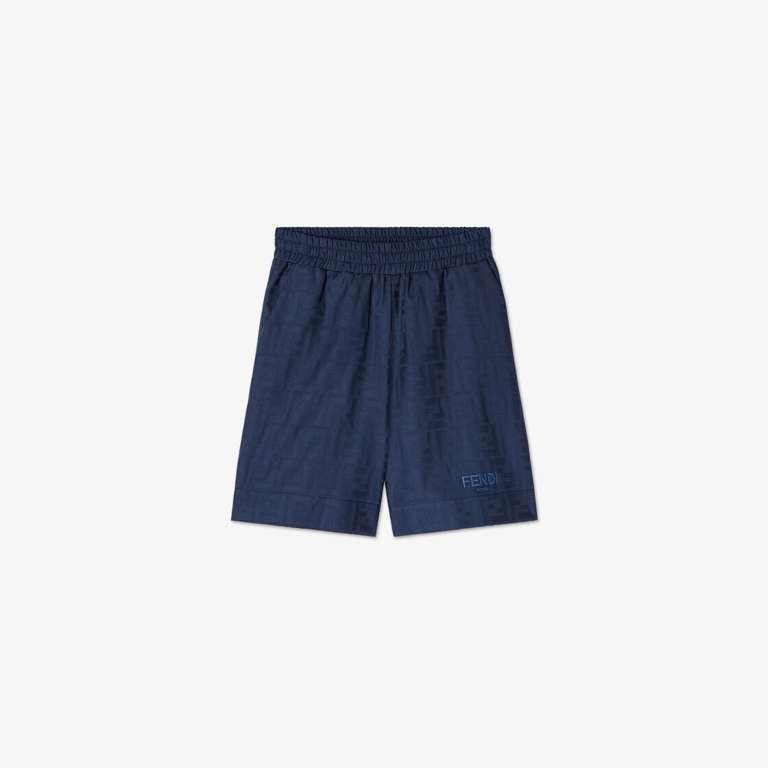 Dark blue cotton jacquard junior Bermuda shorts with all-over tone-on-tone FF logo and Fendi embroidery on the front.
