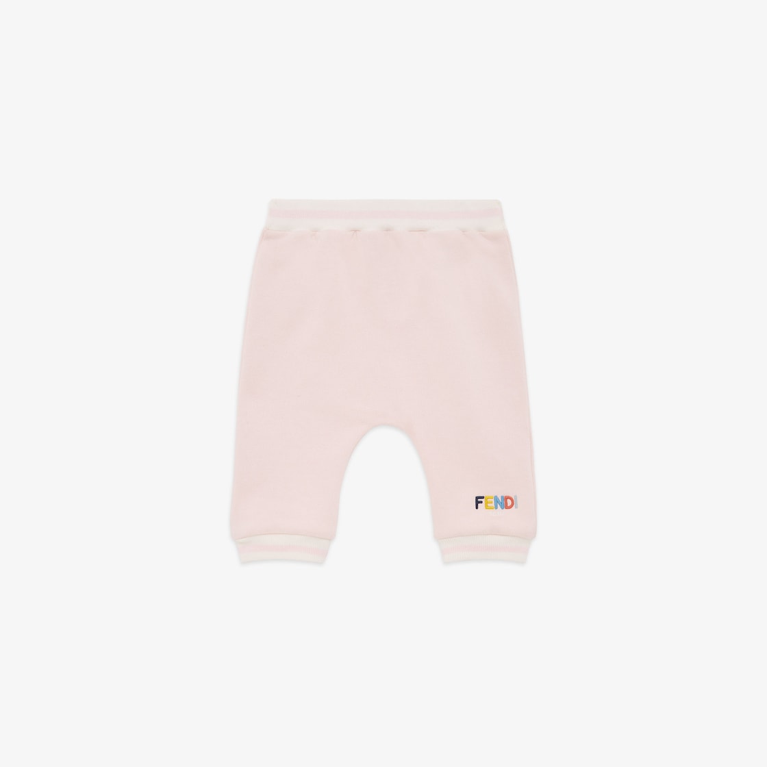Pink jersey-fleece baby jogging trousers with white trimming and multicolour Fendi embroidery.