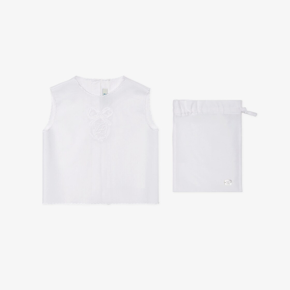 Newborn “Camicia della fortuna” in muslin and silk with embroidery at the front and scallop detailing on the armholes.