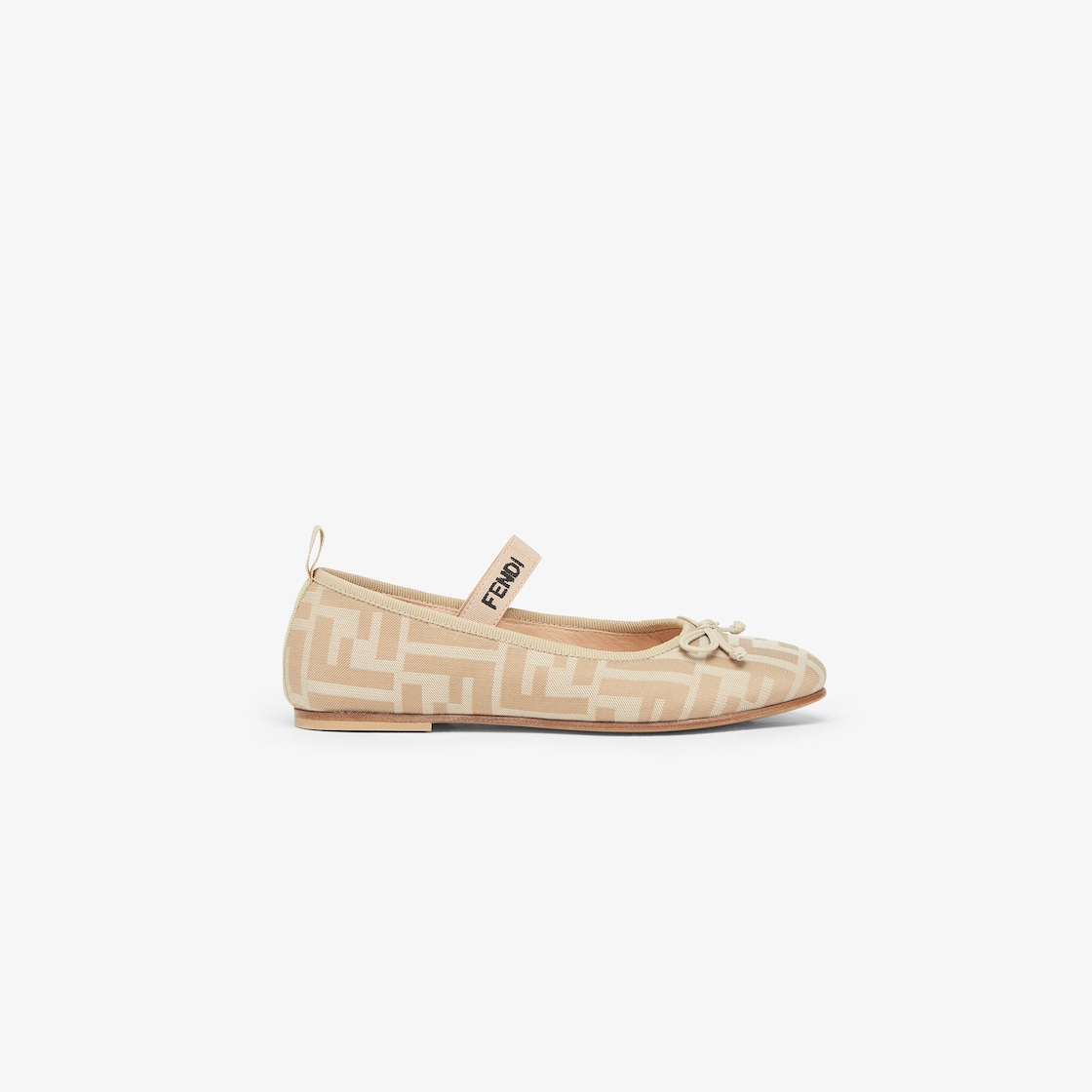 Junior ballet flats with round toe. Made of jacquard fabric with all-over beige tone-on-tone FF logo. Dainty bow on the front and nude-colour elastic to wrap around the instep.