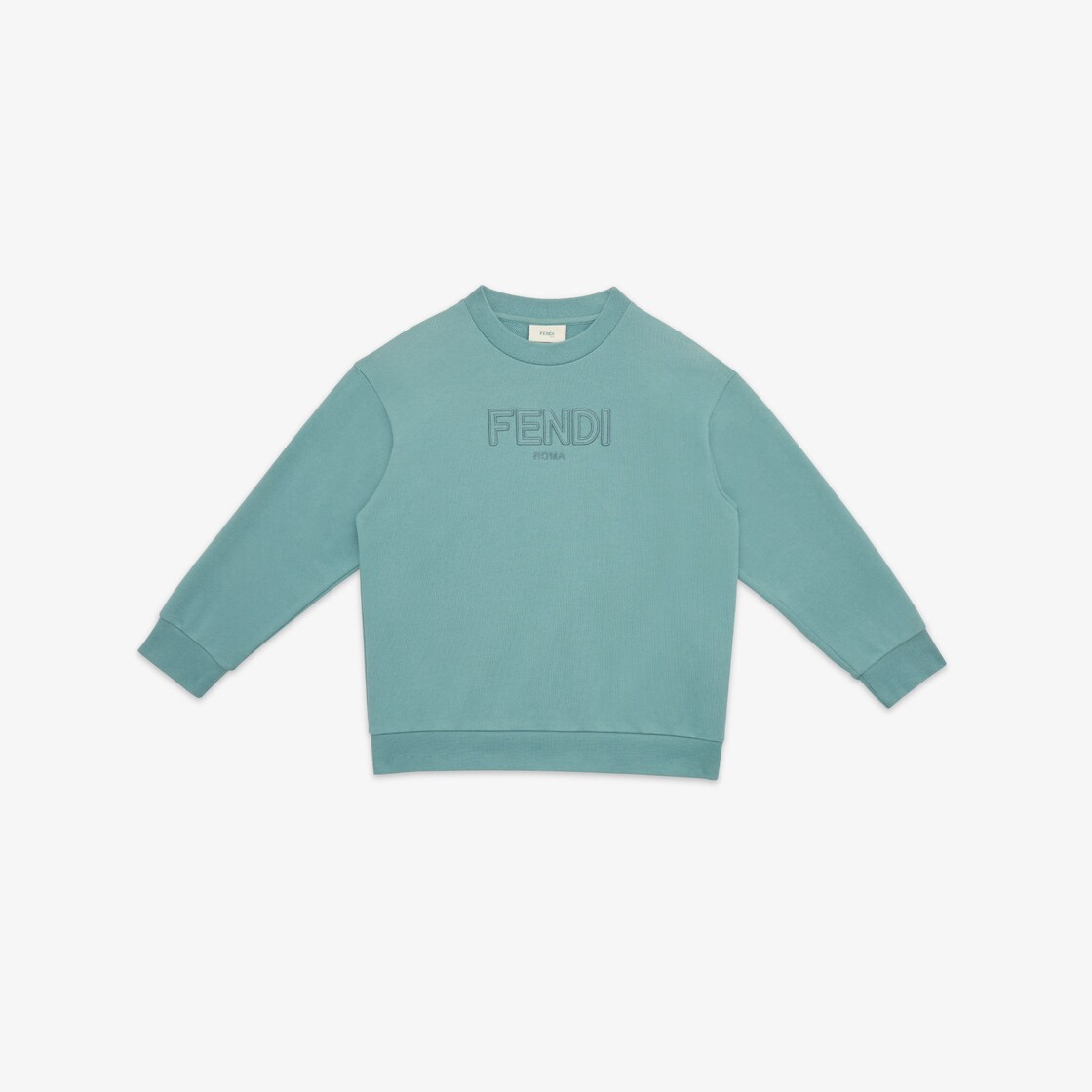 Green cotton junior crew-neck sweatshirt with tone-on-tone Fendi thread embroidery on the front.