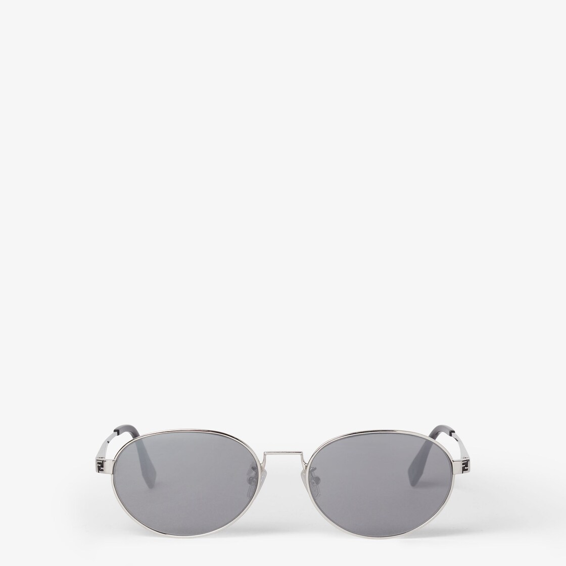Metal oval sunglasses with a palladium finish. FF logo finished with enamel. Black acetate tips with FF motif. Smoke-grey lenses with flash effect. Adjustable nose pads.
