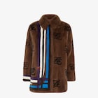 Pea coat with shirt collar, side slits and concealed button closure. Made of brown mink. Inlaid with the all-over inlaid Karligraphy Foulard motif.