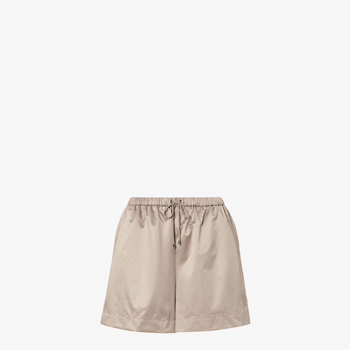 Shorts with elasticated waist. Made of light brown technical silk. Customised with a matching Fendi Stamp 1925 patch on the left side hem.