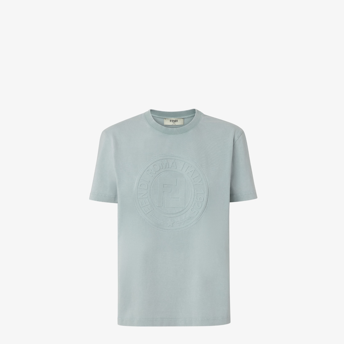 Regular-fit T-shirt with crew neck and short sleeves. Made of light blue washed-effect cotton jersey. Customised with an embossed Fendi Stamp 1925 motif on the front.