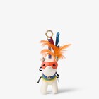 Bijou de sac en microfibre blanche. Bijou de sac chien avec lanière en cuir et mousqueton orné du logo Fendi. Finition à la main avec masque en cuir rouge à ruban noir logotypé, fleurs et plumes multicolores et collier en cuir bleu avec logo FF en métal. Garnitures en métal finition dorée. Un accessoire ludique et personnel pour apporter une note d’élégance à chaque sac de la collection.