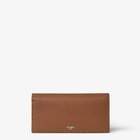 Portefeuille continental avec 14 fentes porte-cartes, trois poches plates et une poche zippée. En cuir Cuoio Romano bleu foncé, orné de 141 grands points cousus main, emblème de la finition Selleria iconique perpétuée par les artisans Fendi depuis 1925. Intérieur contrasté en cuir rouge foncé. Logo Fendi Roma en métal finition palladium.