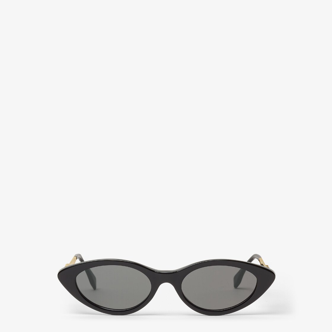 Lunettes de soleil Fendigraphy de forme œil-de-chat allongée avec face en acétate noir. Branches larges en métal finition dorée avec inscription Fendi en 3D et embouts en acétate ton sur ton avec la face. Verres gris dégradé.