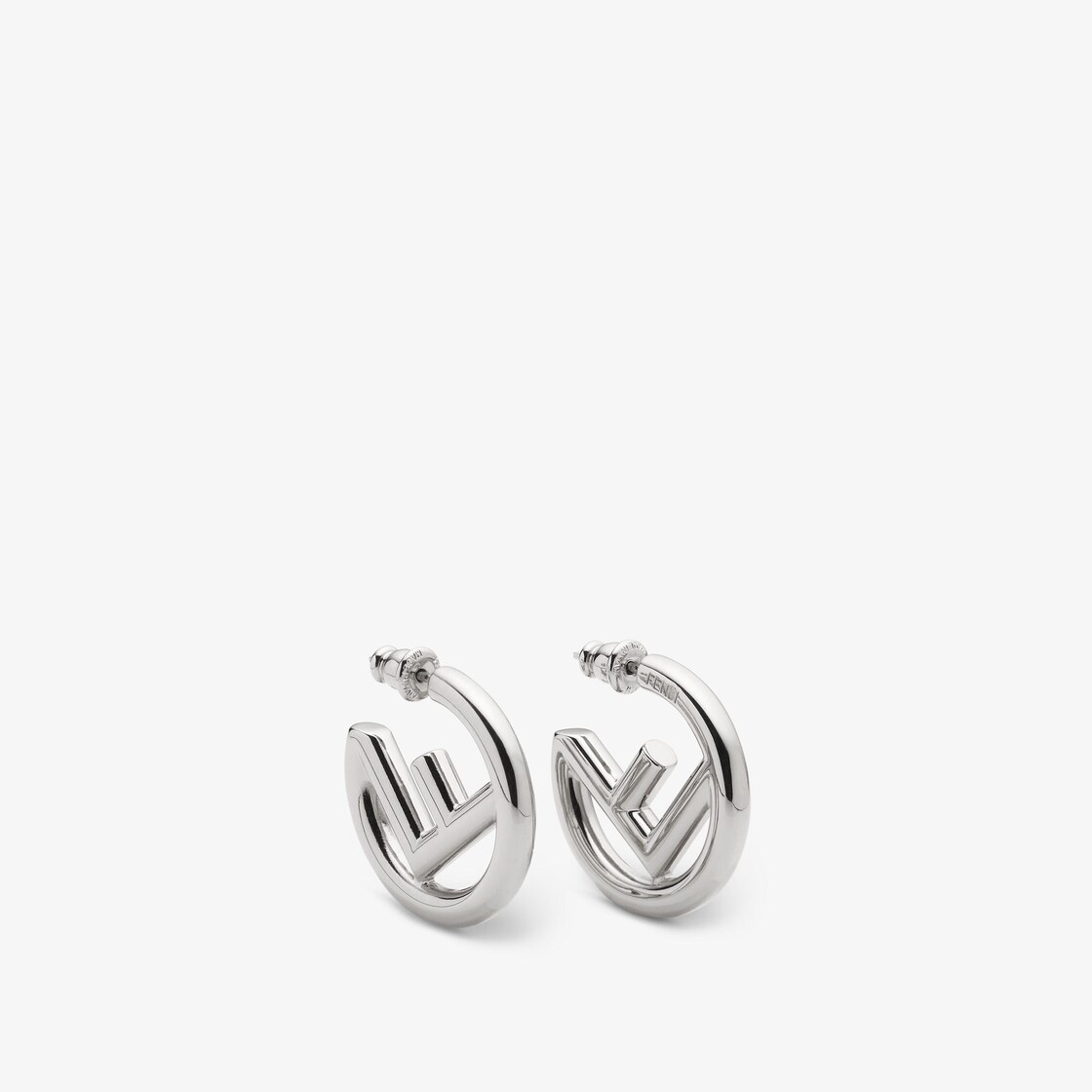 Petites boucles d’oreilles rondes de la forme du nouveau logo Fendi. En métal finition palladium.
