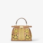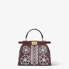 Sac iconique Peekaboo, petit format, quintessence du savoir-faire et de la créativité de Fendi. Icône intemporelle, le sac Peekaboo a été créé en 2009. À l’instar du jeu enfantin de cache-cache dont il prend le nom, peek-a-boo, le sac joue sur l’alternance entre beauté extérieure apparente et beauté intérieure cachée.