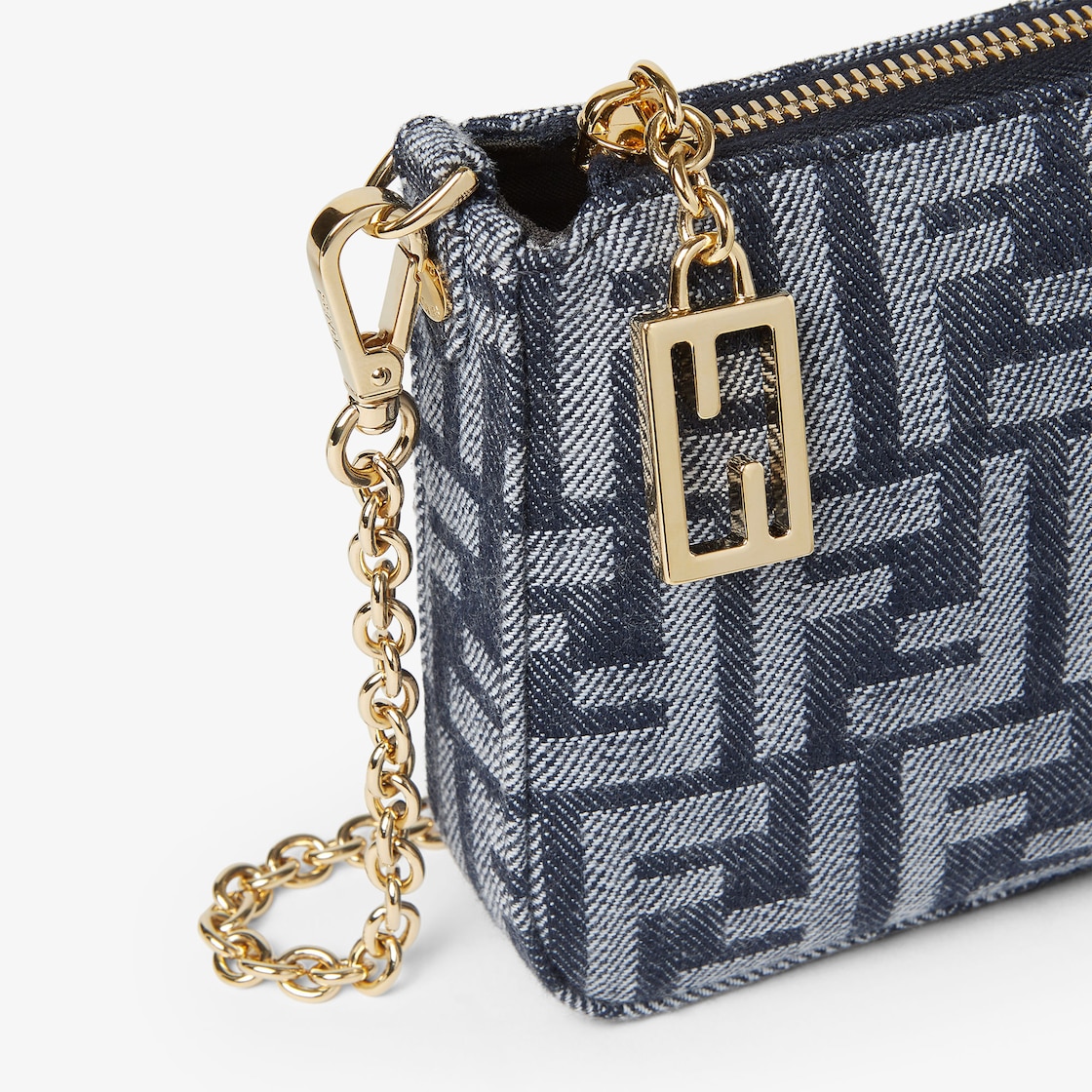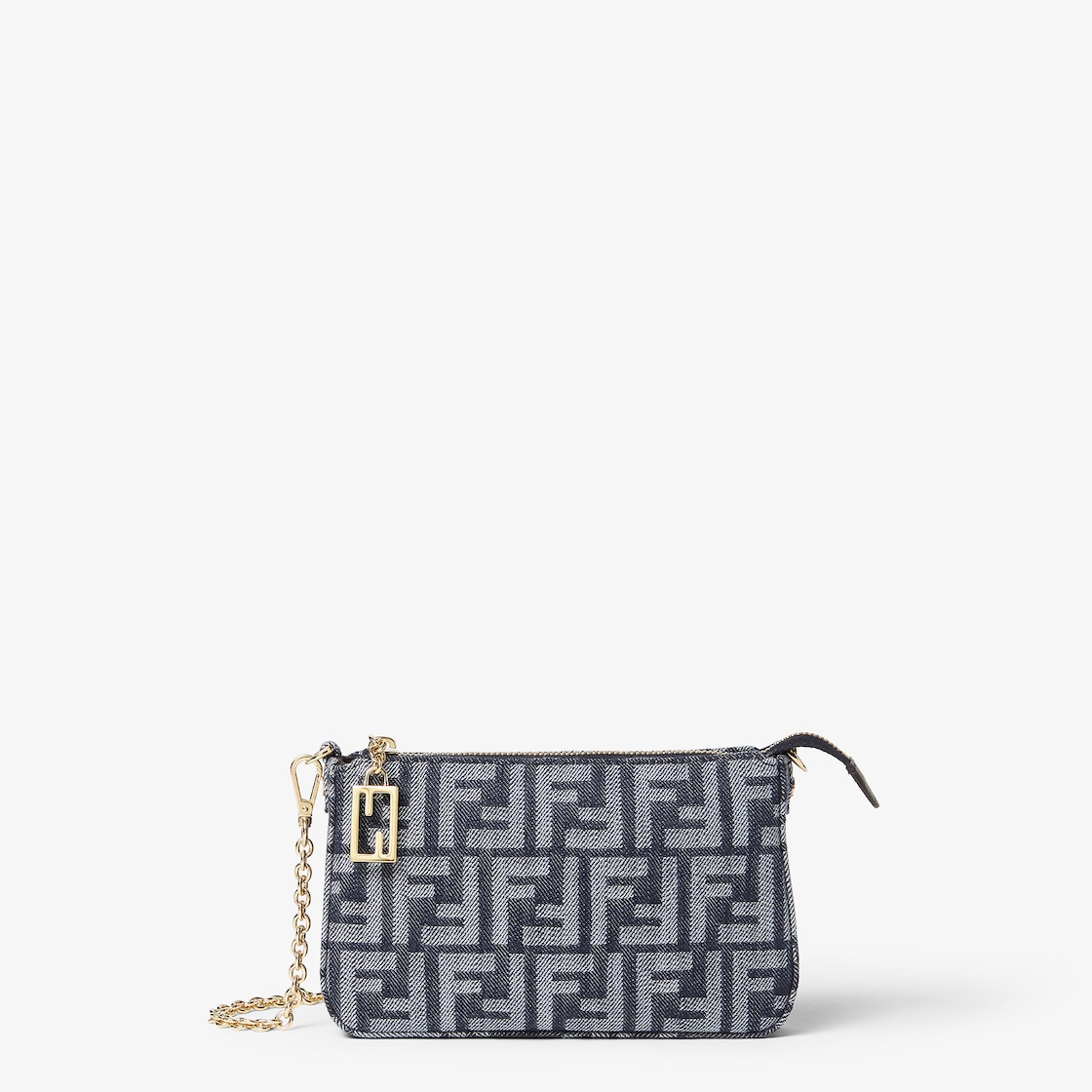 Pochette à chaîne en jacquard FF effet denim bleu