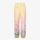 Pantalon à taille élastiquée. Poches zippées latérales et détails de cordon de serrage aux chevilles. Appartenant à la capsule « Fantastic Fendi Future » conçue en collaboration avec l’artiste japonaise Aya Takano, le modèle est confectionné en nylon avec imprimé Fantastic Flowers dans les tons rose et jaune.