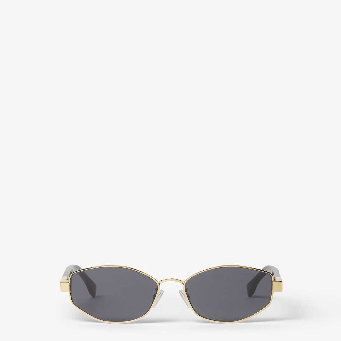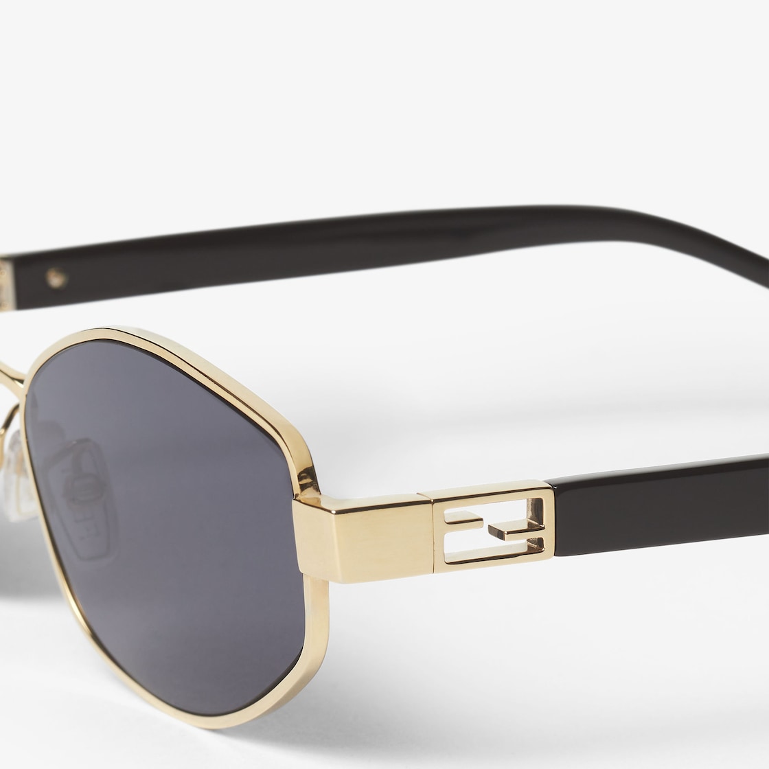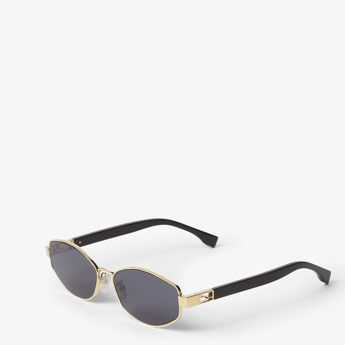 Lunettes Baguette ovales en métal à finition dorée, ornées du motif FF découpé sur les branches en acétate noir. Plaquettes réglables. Verres bleu foncé.