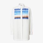 Chemise coupe classique à manches longues. Fermeture par boutons dissimulés. En popeline de coton blanc avec plastron décoré du motif Venetian Stripes imprimé dans un mélange de tonalités estompées dans les tons bleus. Boutons assortis au bas de la manche. Logo Fendi brodé ton sur ton sur le devant, du côté gauche lorsque le vêtement est porté.