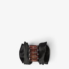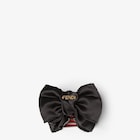 Pince à cheveux avec détail de nœud. En soie noire. Rehaussée de l’inscription Fendi en métal appliquée sur l’avant. Garnitures en métal finition dorée.