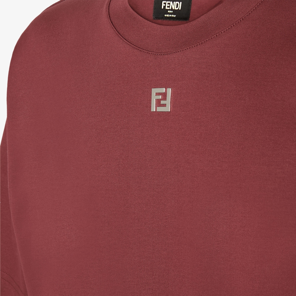 T-shirt coupe classique avec col rond et manches courtes. En 100 % coton bordeaux. Avec micro motif FF en métal finition palladium appliqué sur l’avant.
