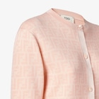 Cardigan à col rond et manches longues. Coupe slim. Boutons en nacre. En fil de pure laine rose clair avec motif FF emblématique finition jacquard all-over. Finition à bords côtelés.