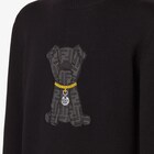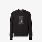 Pull à col rond et coupe classique. En fil de laine noire. Orné d’un grand écusson en jacquard FF noir inspiré d’ITO, le chien de la directrice artistique Silvia Venturini Fendi.