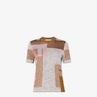Pull ajusté, avec col rond et manches courtes. En viscose jacquard avec motif Peppered Falena dans les tons noirs. Le motif se distingue par les détails color block et les grands FF dans les tons marron et rose clair. Finition avec encolure unie finement côtelée.