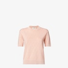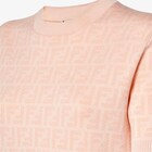 Pull ras-du-cou à manches courtes et coupe ajustée. En fil de laine et soie rose clair avec motif FF emblématique jacquard décliné all-over. Finition bords côtelés.