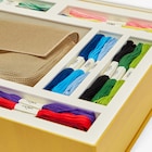 Ce modèle particulier est livré avec un jeu de fils de coton de différentes couleurs, des aiguilles et un dé pour réaliser sa propre broderie et personnaliser son sac de façon absolument unique.