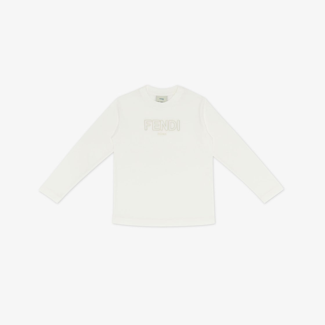 T-shirt enfant à manches longues en jersey blanc avec logo Fendi brodé ton sur ton sur le devant.