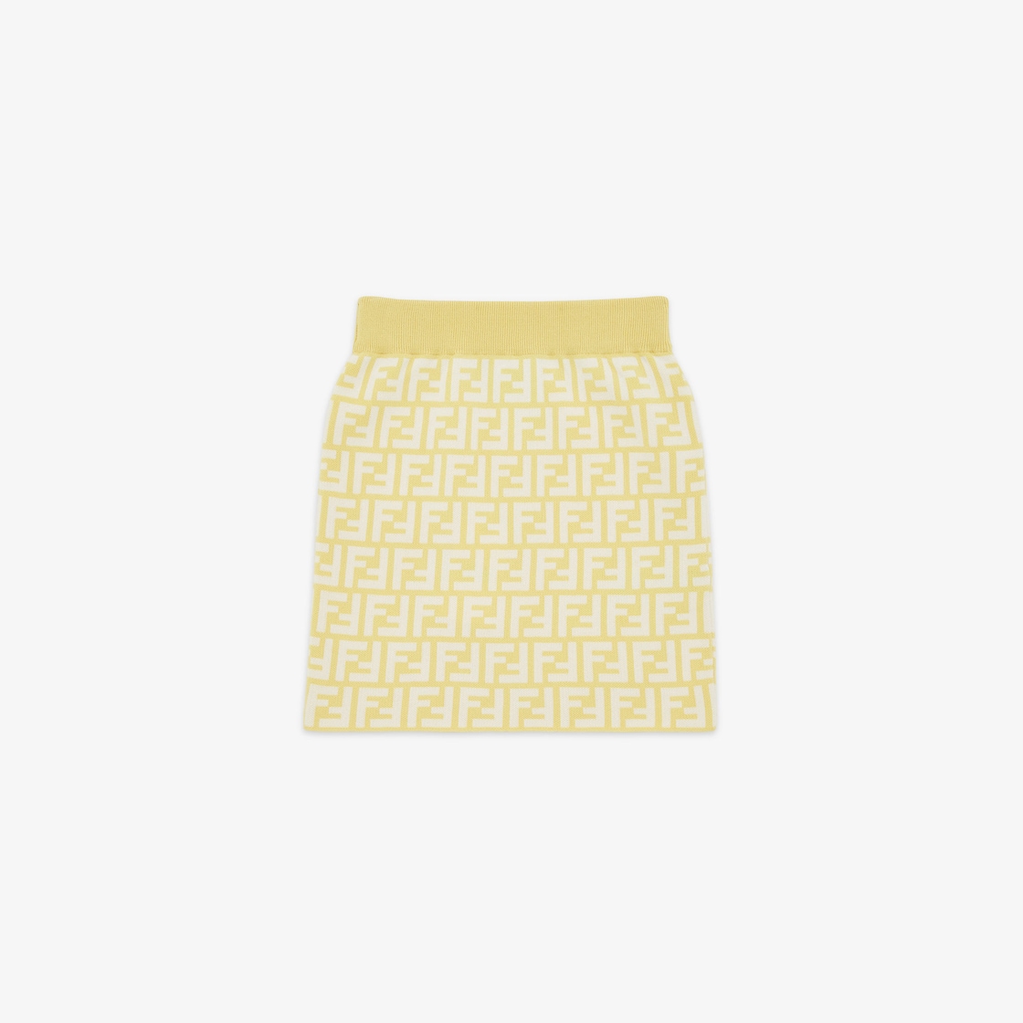 Mini jupe enfant en maille de coton avec logo FF intégral multicolore dans les tons blanc et jaune.