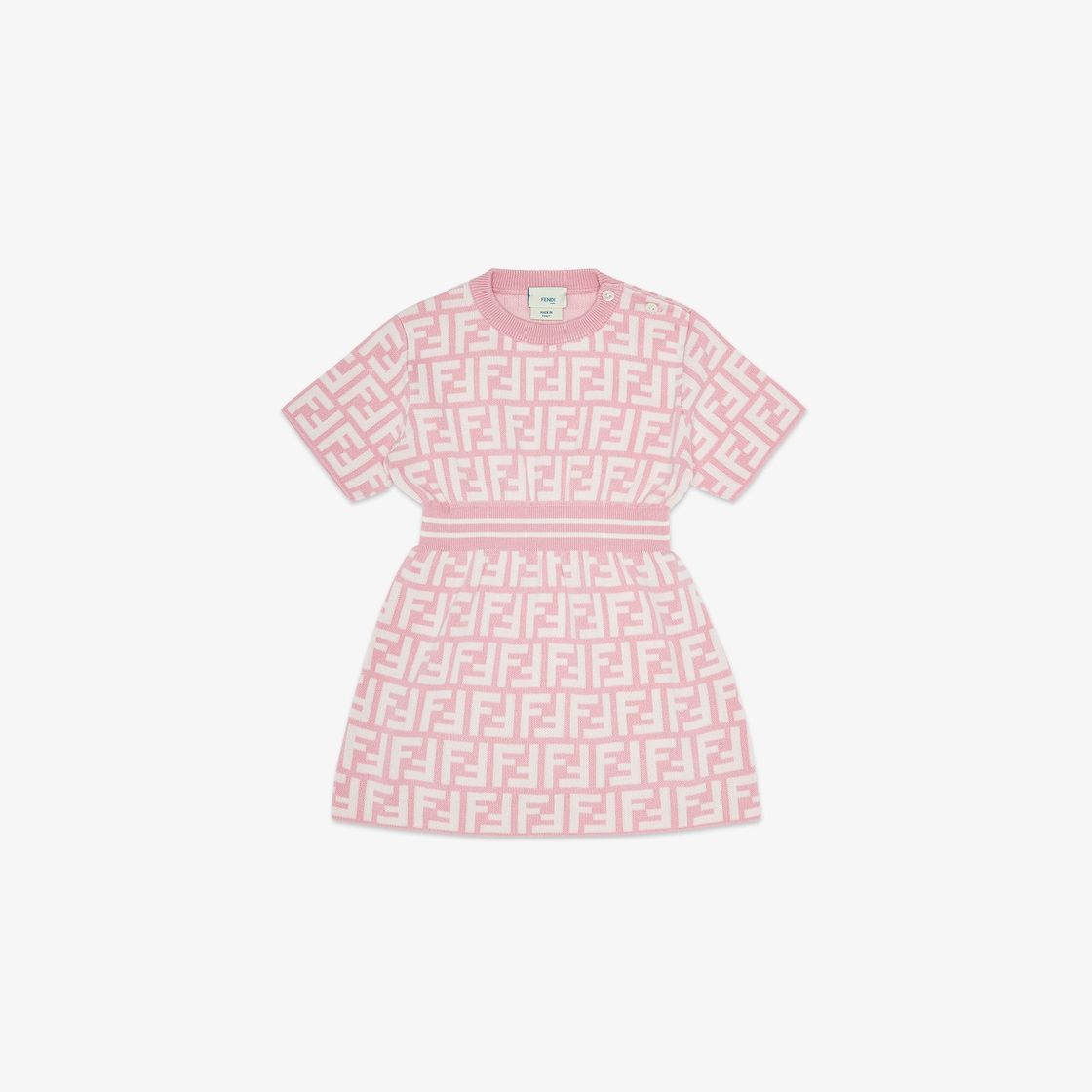 Robe bébé en maille de coton avec logo FF intégral multicolore dans les tons roses.