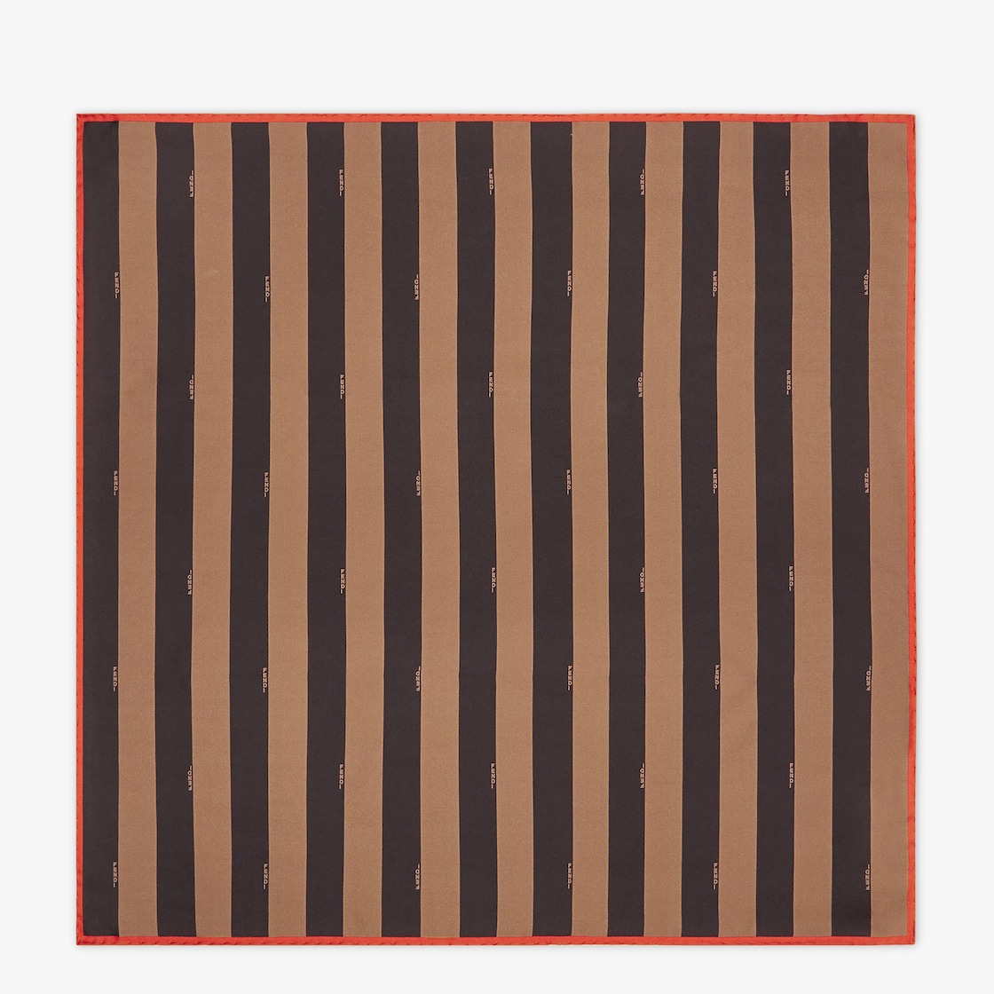 Foulard carré réalisé en soie avec motif à rayures Pequin dans des tons marron et noirs. Bord contrasté rouge.