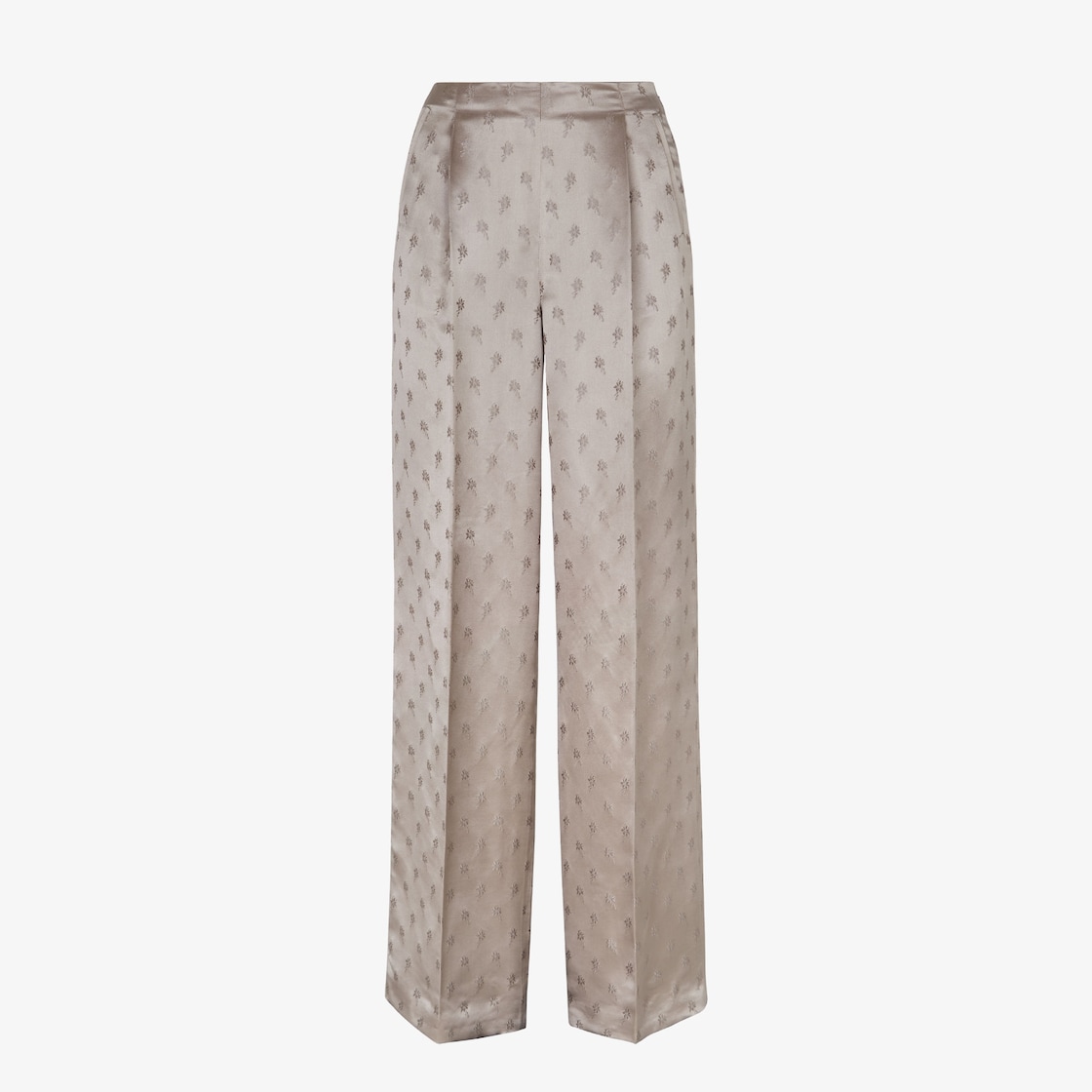 Pantalon pyjama avec pinces sur l’avant et pli marqué. Poches sur les côtés et petite poche droite passepoilée au dos. Fermeture zippée sur le côté. En jacquard de soie avec motif micro bouquets de fleurs couleur marron clair.