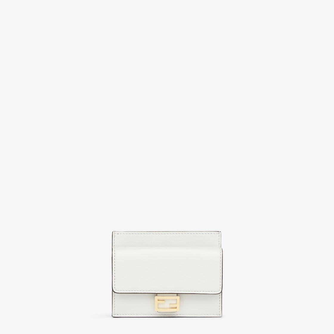 Porte-cartes Baguette à trois fentes et poche porte-monnaie avec bouton-pression. En cuir nappa blanc. Finition avec motif FF à texture 3D au dos. Accessoires en métal à finition dorée.