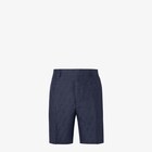 Bermuda avec passants de ceinture à la taille. Poches latérales et poches passepoilées boutonnées au dos. Fermeture zippée dissimulée. En jacquard FF de lin dans les tons beiges. Petites fentes latérales au bas.