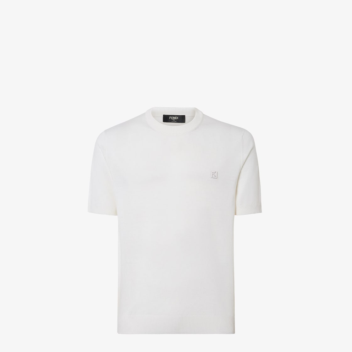 Pull ras-du-cou à manches courtes. Bords finement côtelés. En fil de laine blanc. Orné du petit logo FF en métal à finition palladium appliqué sur la poitrine.
