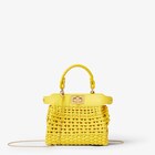 Die ikonische Tasche Peekaboo in Nano-Ausführung wurde bis ins kleinste Detail nachempfunden. Mit zwei Innenfächern, die durch eine feste Trennwand getrennt sind, einem abnehmbaren Griff mit zwei Druckknöpfen und der ikonischen Drehschließe. Dank der schmalen Schulterkette kann die Tasche als Handtasche oder als Umhängetasche getragen werden. Aus von Hand geflochtenem Band aus Leder in Ginstergelb. Beschläge aus Metall mit Finish in Gold-Optik.
